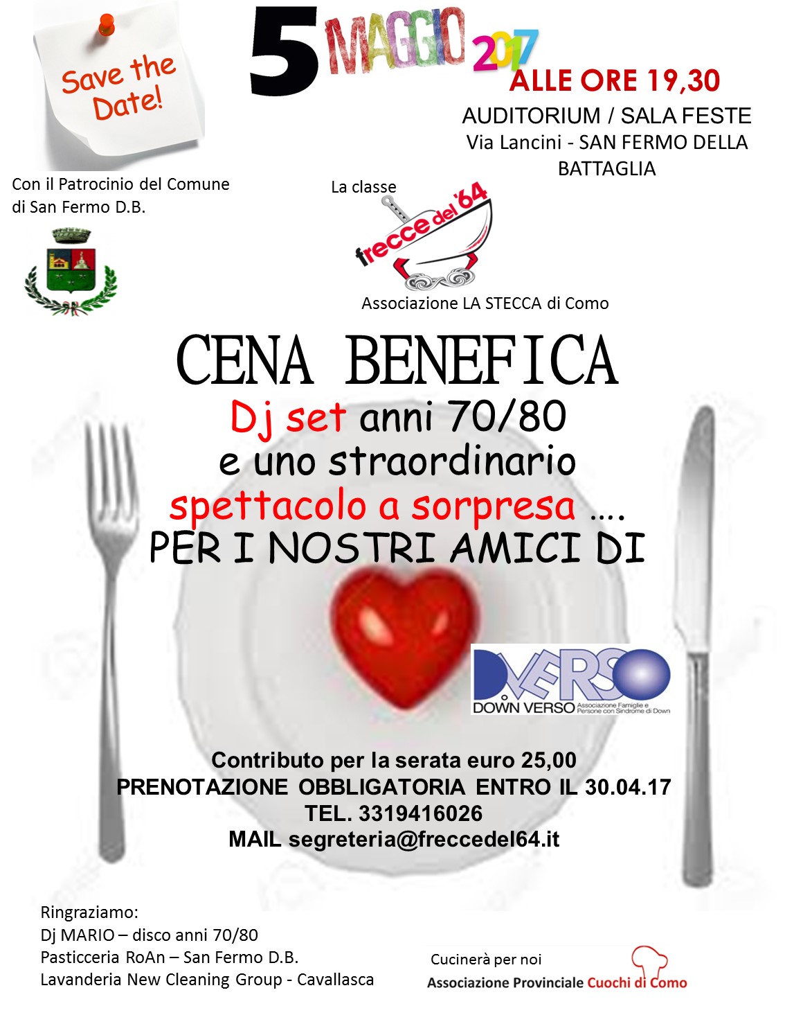 Cena benefica per Down Verso, il 5 maggio